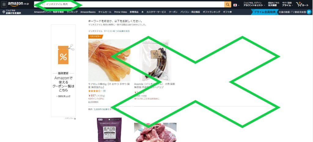 イリオスマイル馬肉(馬肉パラパラミンチ)はアマゾンでは取り扱いがないという落とし穴はがあります。