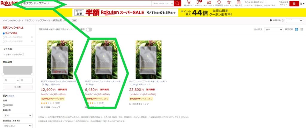 モグワンドッグフード落とし穴最安値は楽天ではなくメルカリなの?