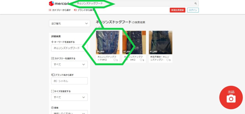 口コミを調べるとネルソンズドッグフードの最安値はメルカリで購入した場合という事が分かりました。